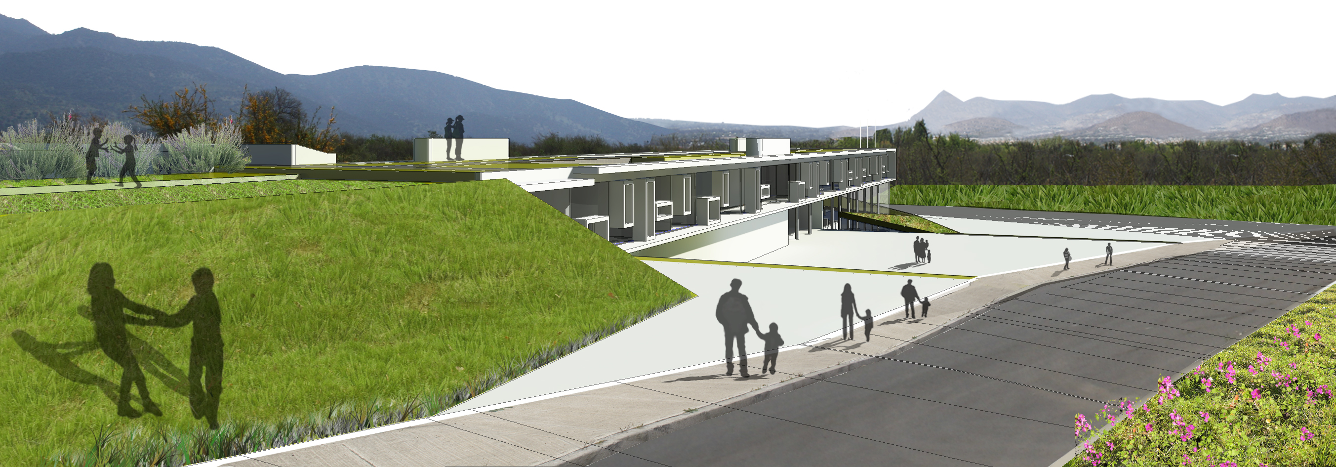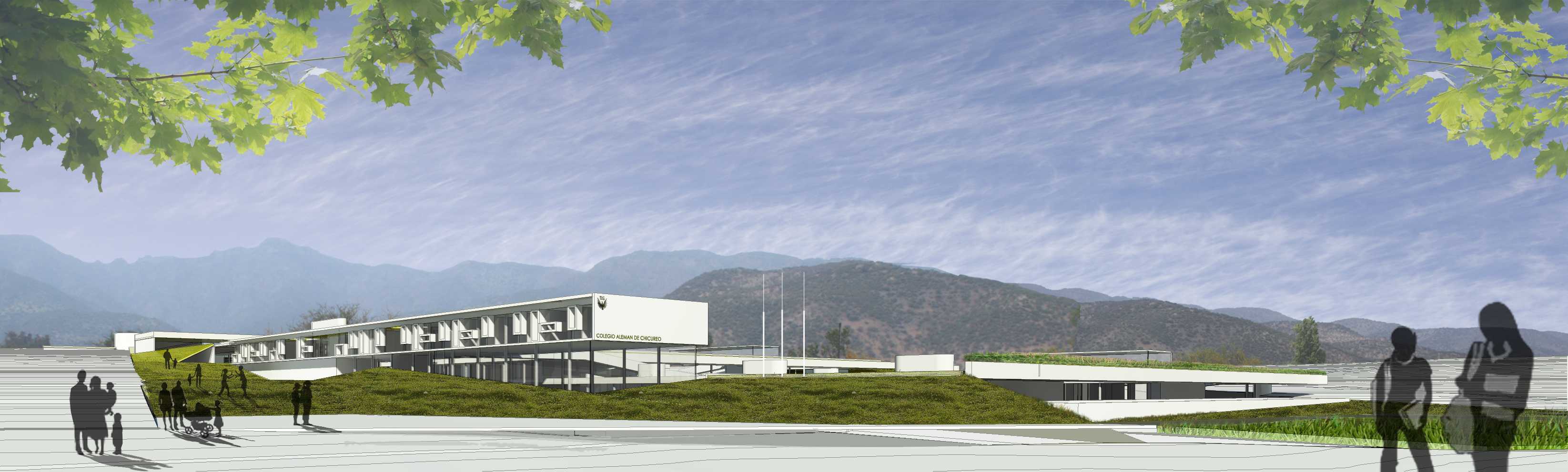 1.- Terraza: se reconstruye la cota conforme su pendiente natural. se define el aterrazamiento para cada ciclo educacional; Acceso, Pre-Escolar, Básico y Medio-College. 2.- Orientación: Se rotan los ejes naturales del predio en función del Norte, asoleando las cuatro fachadas. Se redefine la geometría del lugar a partir de las terrazas, que permiten reconstruir la observación del valle desde una perspectiva nueva de paisaje.