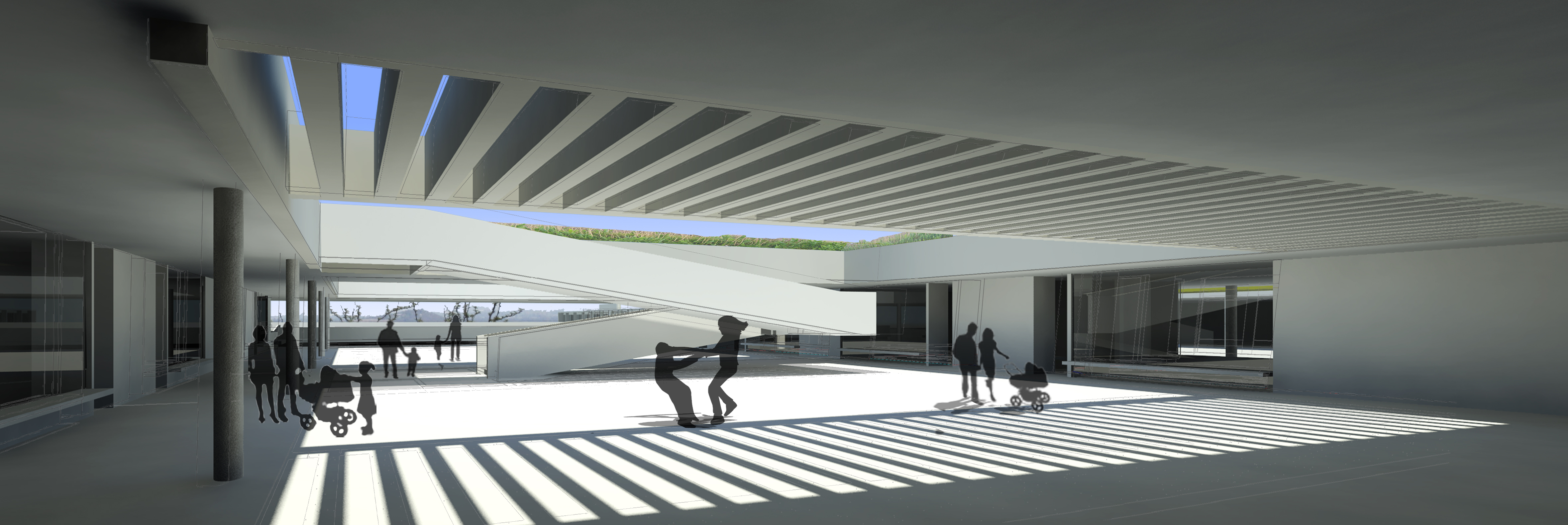 Se enfrenta mediante la conquista de cuatro “Terrazas-Parque” matriciales, que dan origen al conjunto. Se establece un nuevo marco geométrico de operatividad.